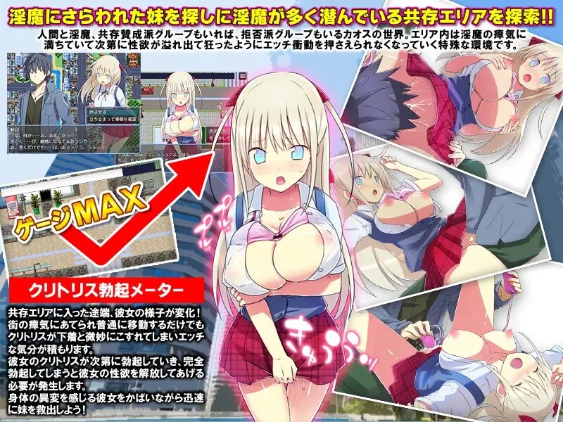 这是一款探索游戏,旨在寻找被淫魔抓走的妹妹,探索到充斥着淫魔的共存区域。