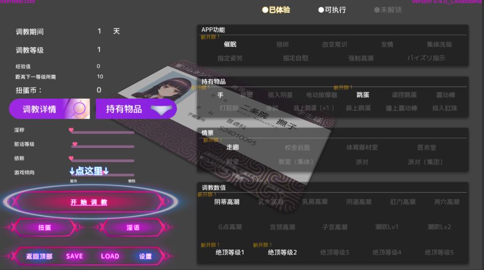 ・调教结束后会清除调教期间的记忆,调教环节终止。即使记忆被消除,随着身体逐渐被开发,对方的态度也会逐渐改变。